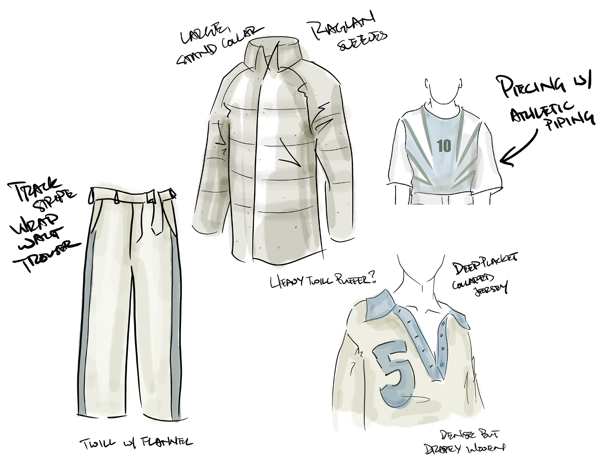 A look at traditional sportswear through a contemporary lens. Inspired by the graphics and silhouettes of classic sports styles with an integration of traditional American menswear and workwear.